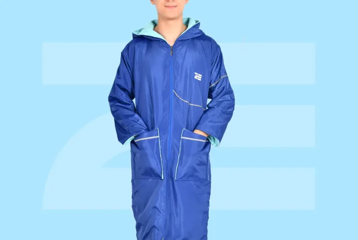 _ طبقة خارجية ووتربروف مستورد مقفول المسام لاتسمح بمرور الماء او الهواء لحماية كاملة بعد السباحة ، الطبقة الداخلية فوطة قطن مخلوط (90% قطن – 10%بوليستر) ناعمة على الجسم ، سريعة الامتصاص .