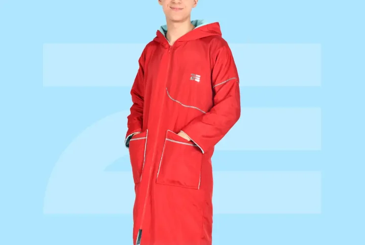 _ طبقة خارجية ووتربروف مستورد مقفول المسام لاتسمح بمرور الماء او الهواء لحماية كاملة بعد السباحة ، الطبقة الداخلية فوطة قطن مخلوط (90% قطن – 10%بوليستر) ناعمة على الجسم ، سريعة الامتصاص .
