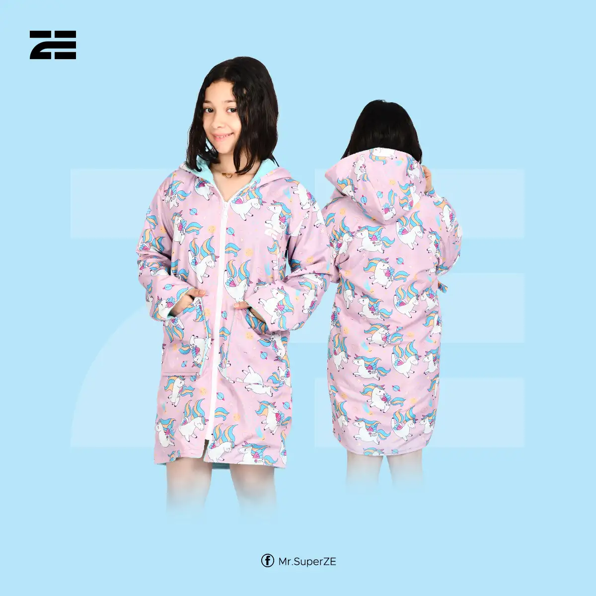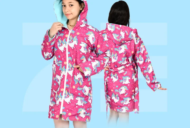 _ طبقة خارجية ووتربروف مستورد مقفول المسام لاتسمح بمرور الماء او الهواء لحماية كاملة بعد السباحة ، الطبقة الداخلية فوطة قطن مخلوط (90% قطن – 10%بوليستر) ناعمة على الجسم ، سريعة الامتصاص .